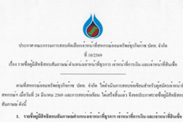 ประกาศรายชื่อผู้มีสิทธิ์สอบสัมภาษณ์เจ้าหน้าที่สหกรณ์